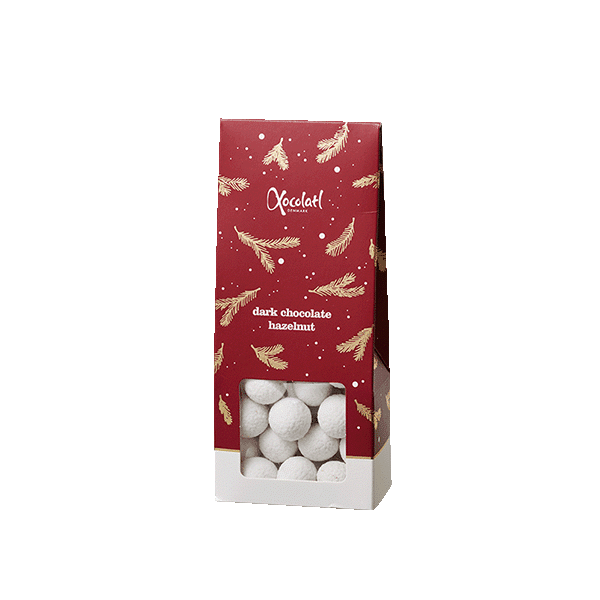 Sprøde hasselnødder med 70% mørk chokolade og sukkerdragéring
