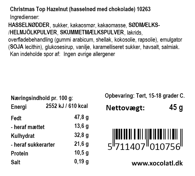 Fin juletop med sprøde hasselnødder overtrukket med en lækker chokolade.