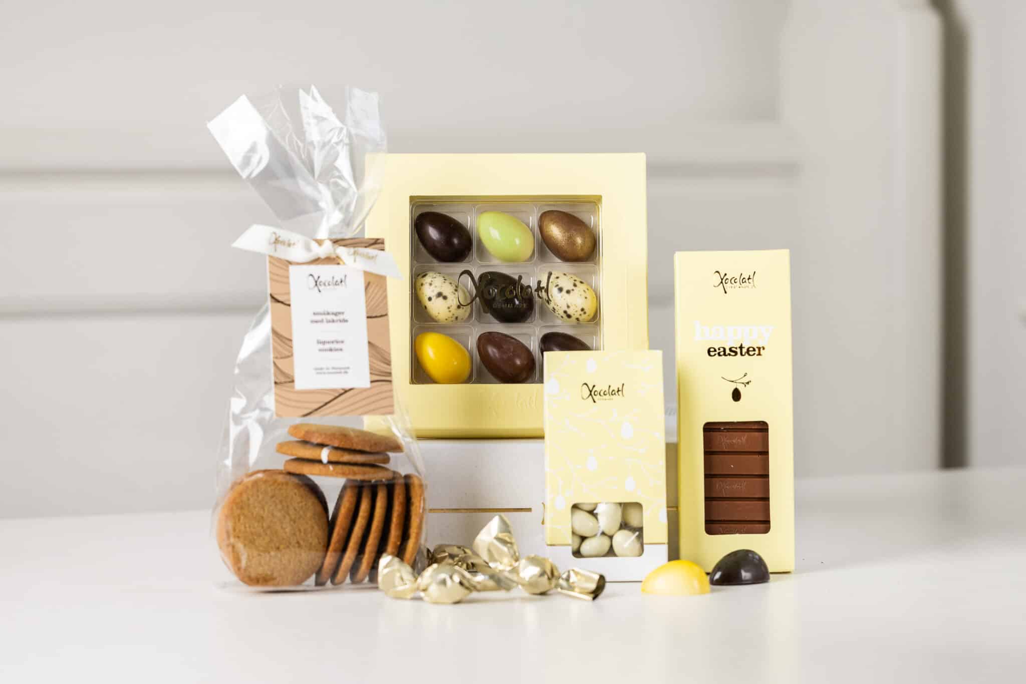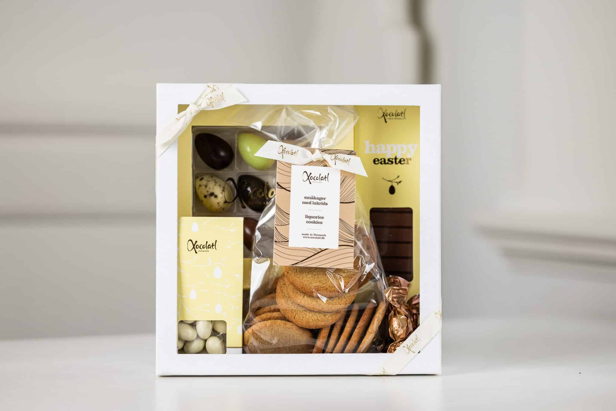 mælkechokolade og havsalt, smørbagte småkager med lakrids samt flowpakkede lakridser med