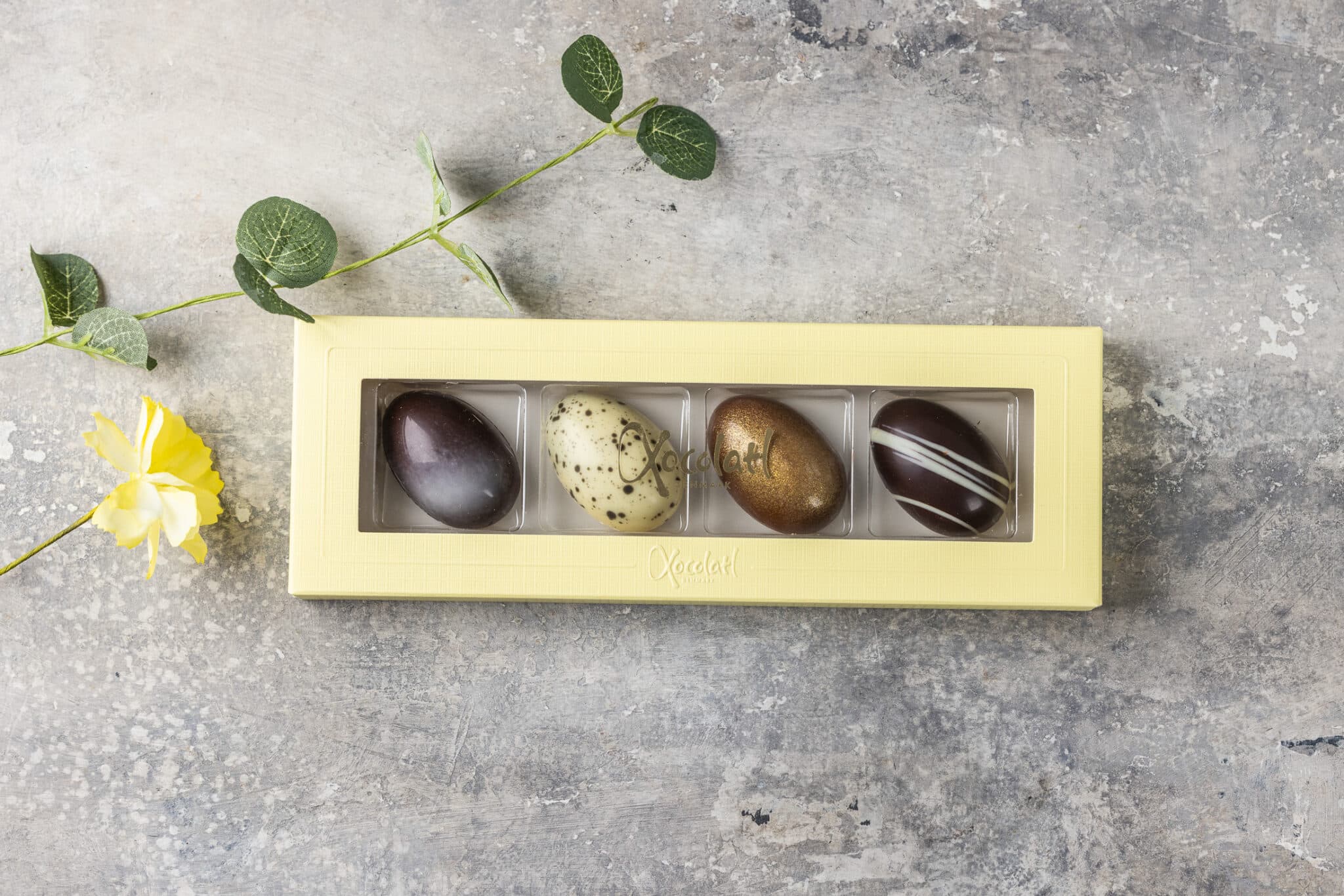 4 fyldte chokolader med saltkaramel, lakrids, flødekaramel og mintkaramel
