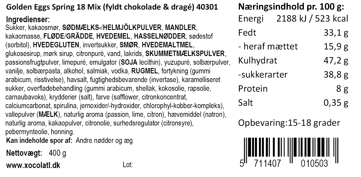 mint, citron, saltkaramel og marcipan. Derudover et lækkert dragemix med blandt anden