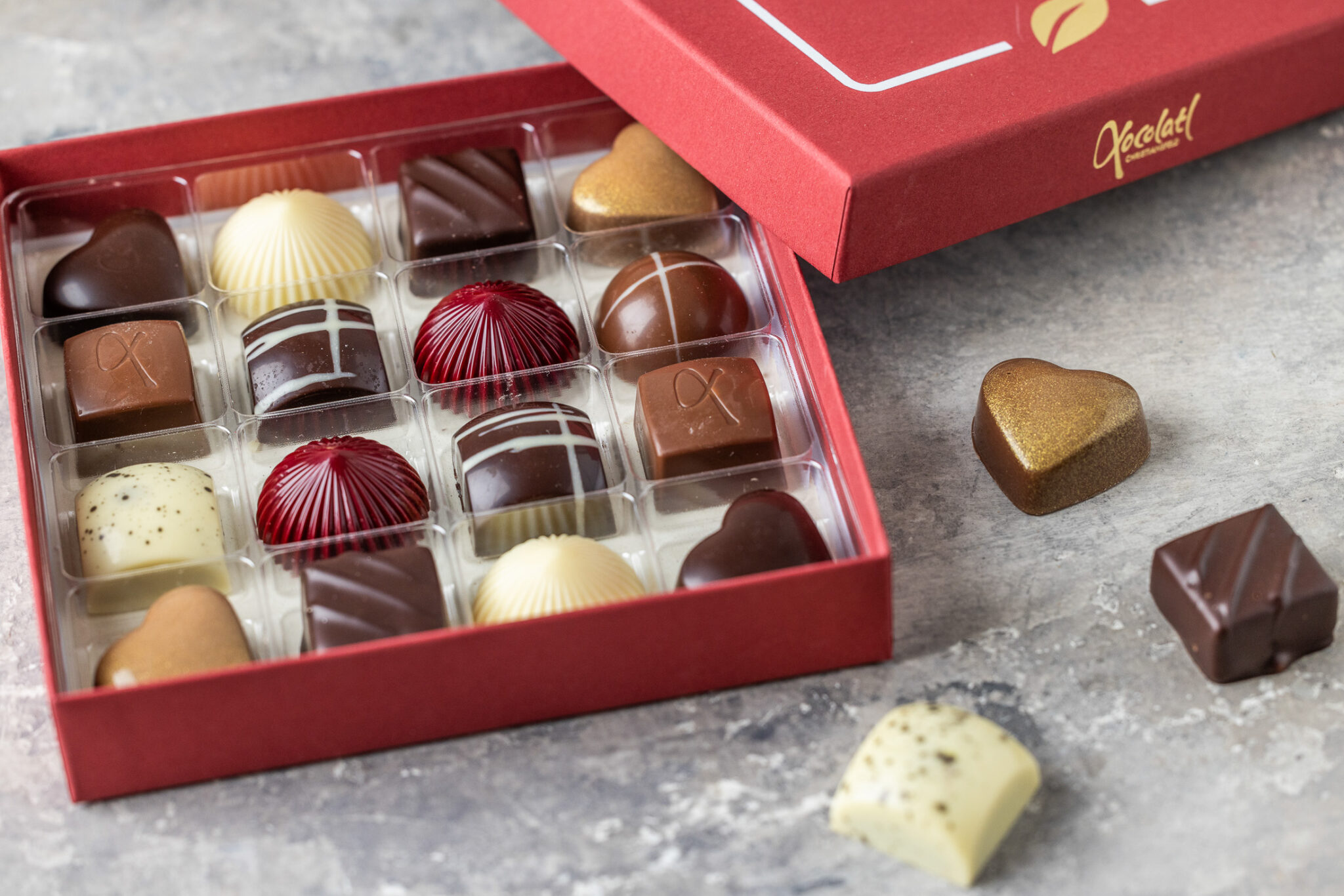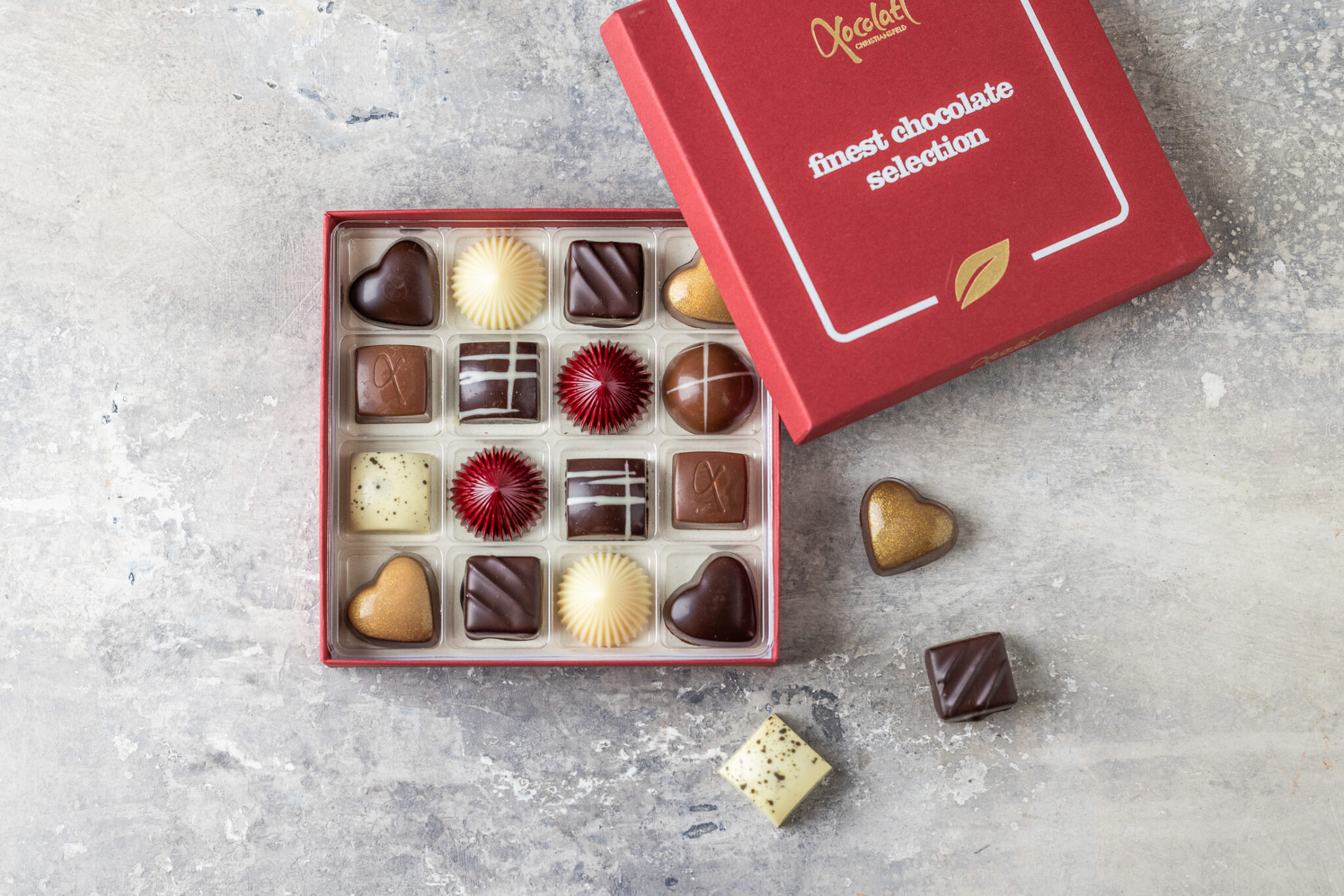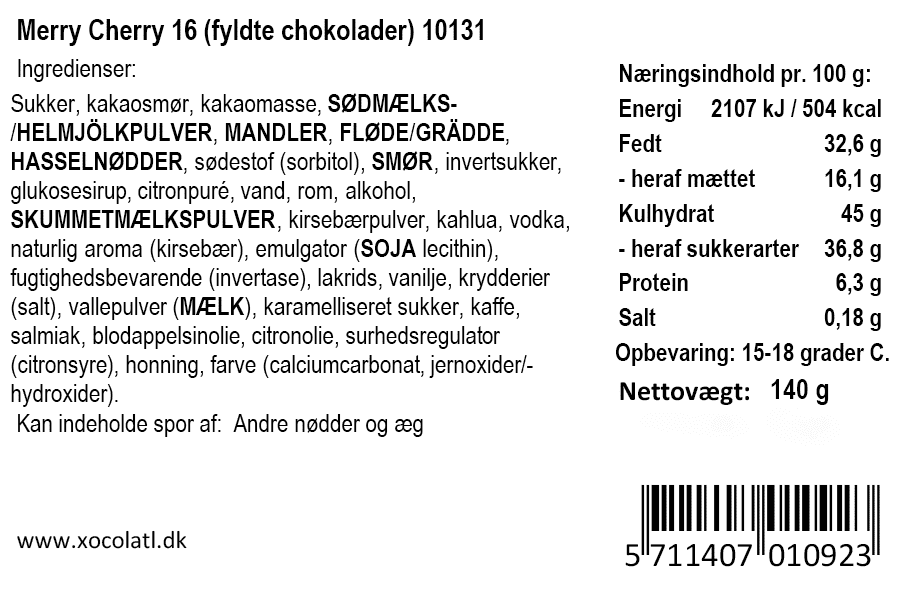 Merry Cherry gaveæskerne kommer i syv forskellige udgaver, men denne har hele 16 fyldte chokolader med forskellige smagsvarianter som