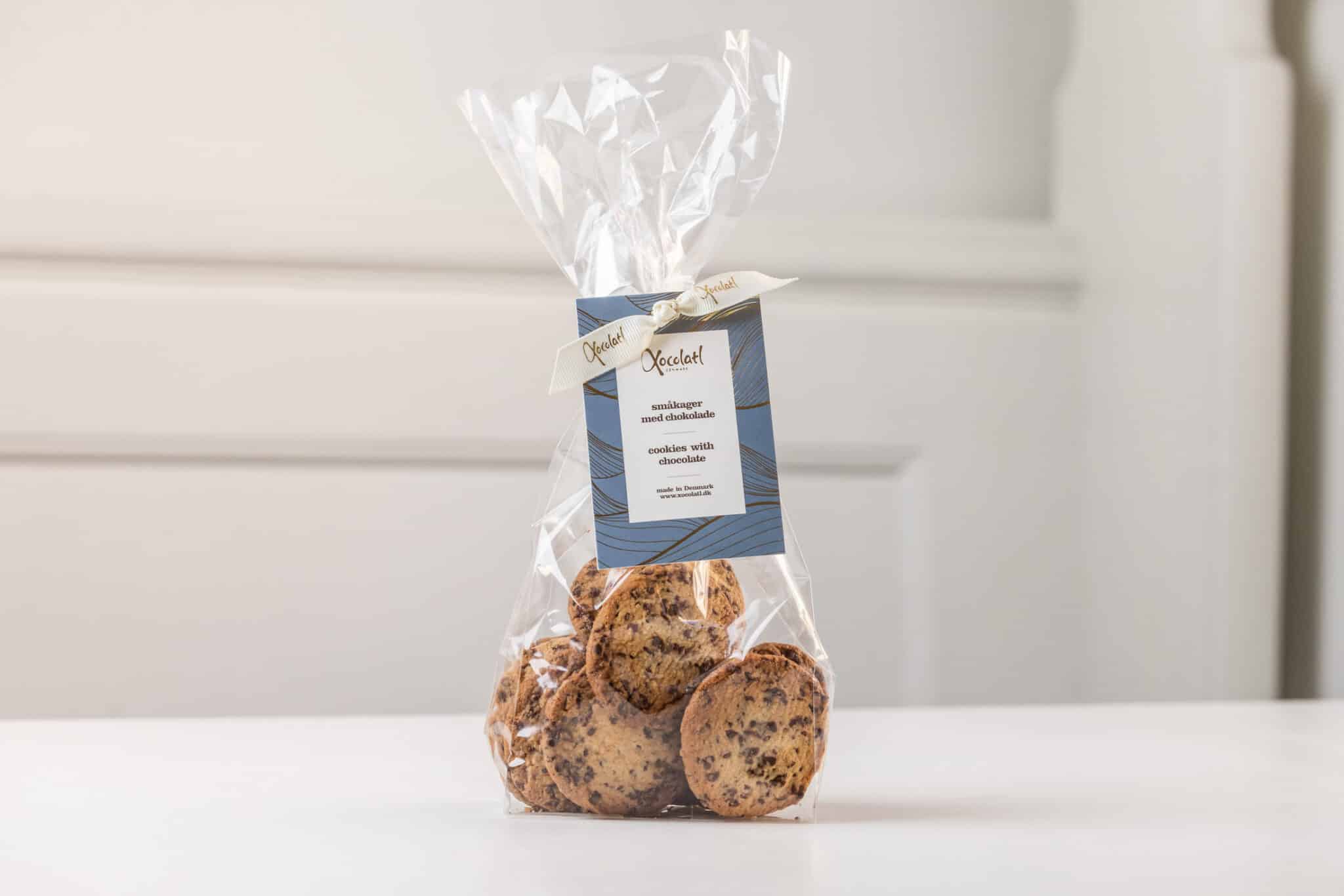 Smørbagte småkager med chokolade.