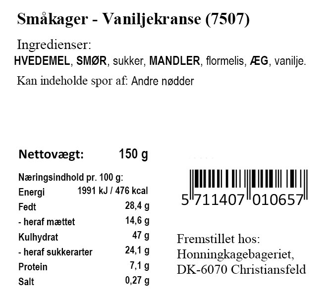 BEMÆRK holdbarhed på småkager 3-4 mdr.